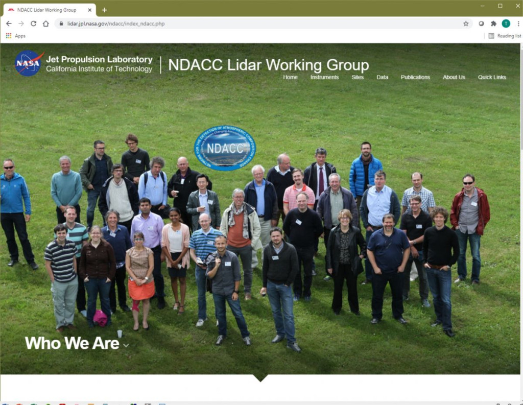 The NDACC Lidar Working Group (LWG) has relocated and redesigned its website. The new website URL is https://lidar.jpl.nasa.gov/ndacc/index_ndacc.php. The website features a review of the NDACC lidar stations and instruments, with new links and functionality to check data availability and access them. Fine-tuning of the website content will continue over the upcoming weeks.