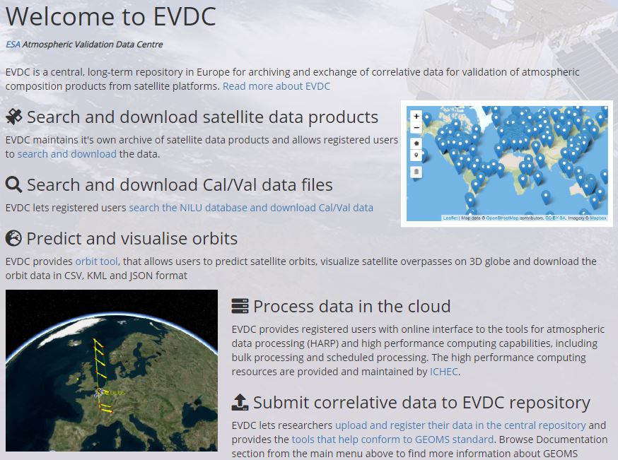 The ESA Atmospheric Validation Data Center (EVDC) has been updated, introducing new tools and upgrading existing functionalities for the exploitation of users interested in accessing both Cal/Val data and satellite products for specific missions. The main updates of the EVDC portal include: